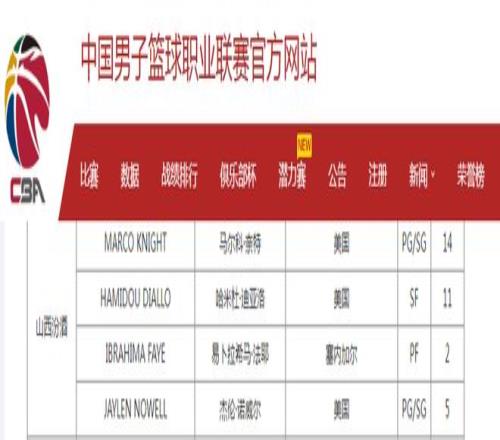 CBA官方:山西取消场均0.9分黑根斯注册新外援奈特成功注册