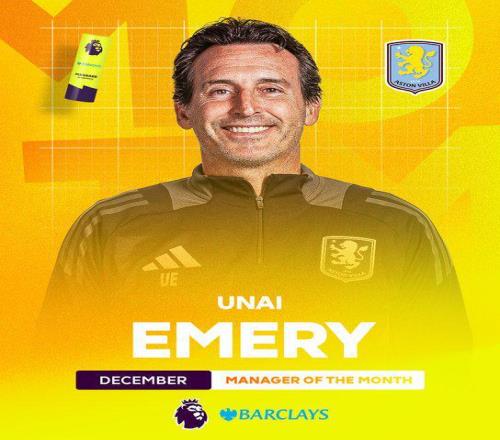 官方:埃梅里当选英超12月最佳主帅,当月联赛6胜1负