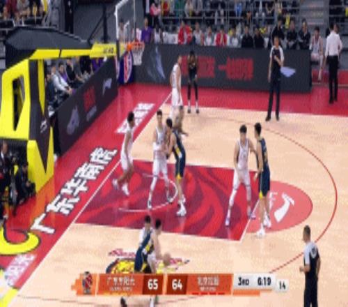 7分37秒,胡队长不信邪继续强杀终于制造2+1,一回合后杜润旺反击飚进三分,胡明轩终于打开得分账户,果断命中外线三分连得6分,广东9-0反超北控。
